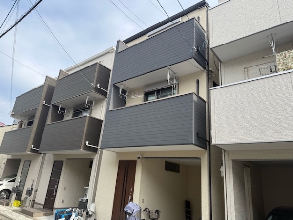 大阪市東淀川区のお客様の3階建ての住宅は屋根と壁を省エネ塗料の断熱ガイナで一新!!