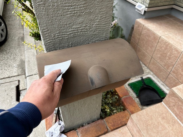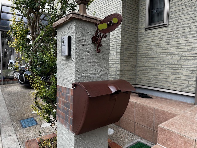 四條畷市のお客様の家の外壁塗装が無事に終わりましたが、門柱のポストが色褪せており、以前自身で塗った様ですが外壁が綺麗になった分目立つ様になったので塗装する事にしました。
