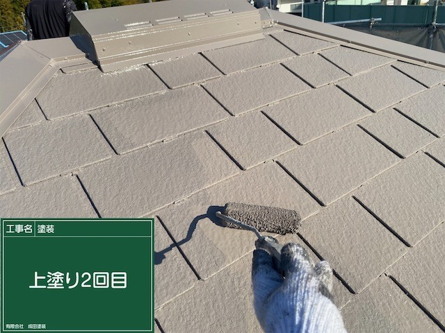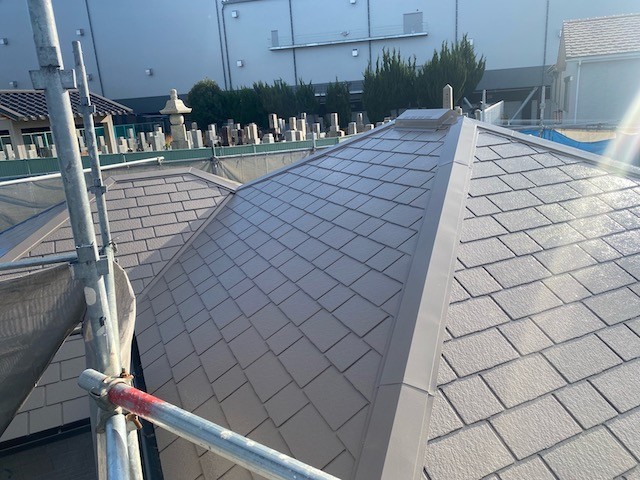 屋根は日本ペイントのサーモアイSiのクールローズブラウンで明るい屋根にして遮熱効率をアップ!