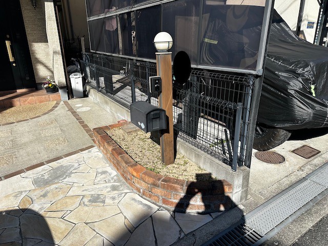 枚方市のお客様の駐車場の花壇の撤去とポストの塗装。