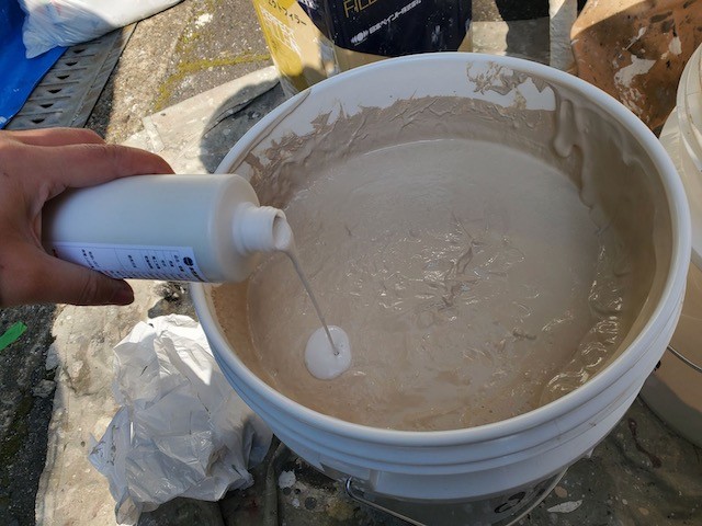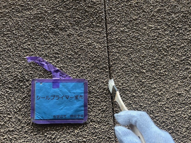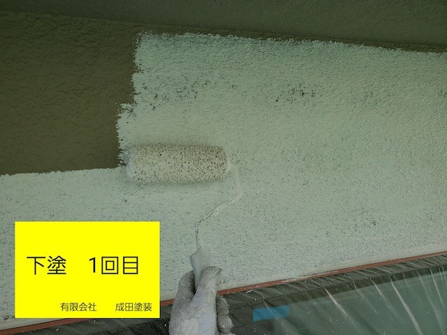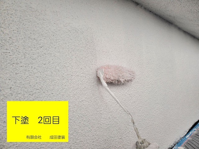 下塗りのアンダーフィラーを2回に分けて厚く塗装してひび割れに強い塗膜を作りました。