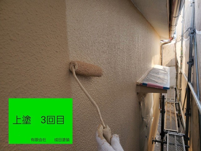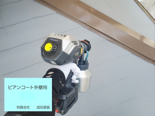 仕上げは無機のガラスコーティングのビアンコート外壁用を塗装してクリア層を作ると同時に疏水効果で外壁に汚れがつきにくい様にして完成です。
