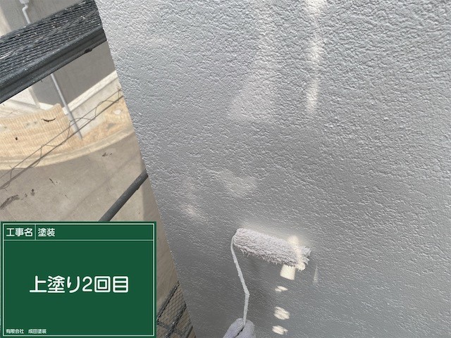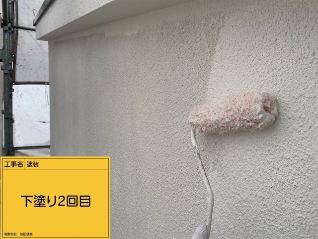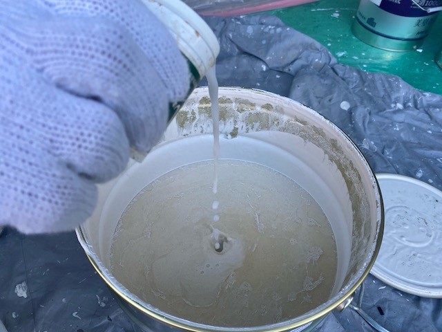 その強固な下塗りの上にリファイン1000MS-IRを2回塗る事で塗膜に層が4層もついて耐候性はもちろんひび割れにも強くなりました。