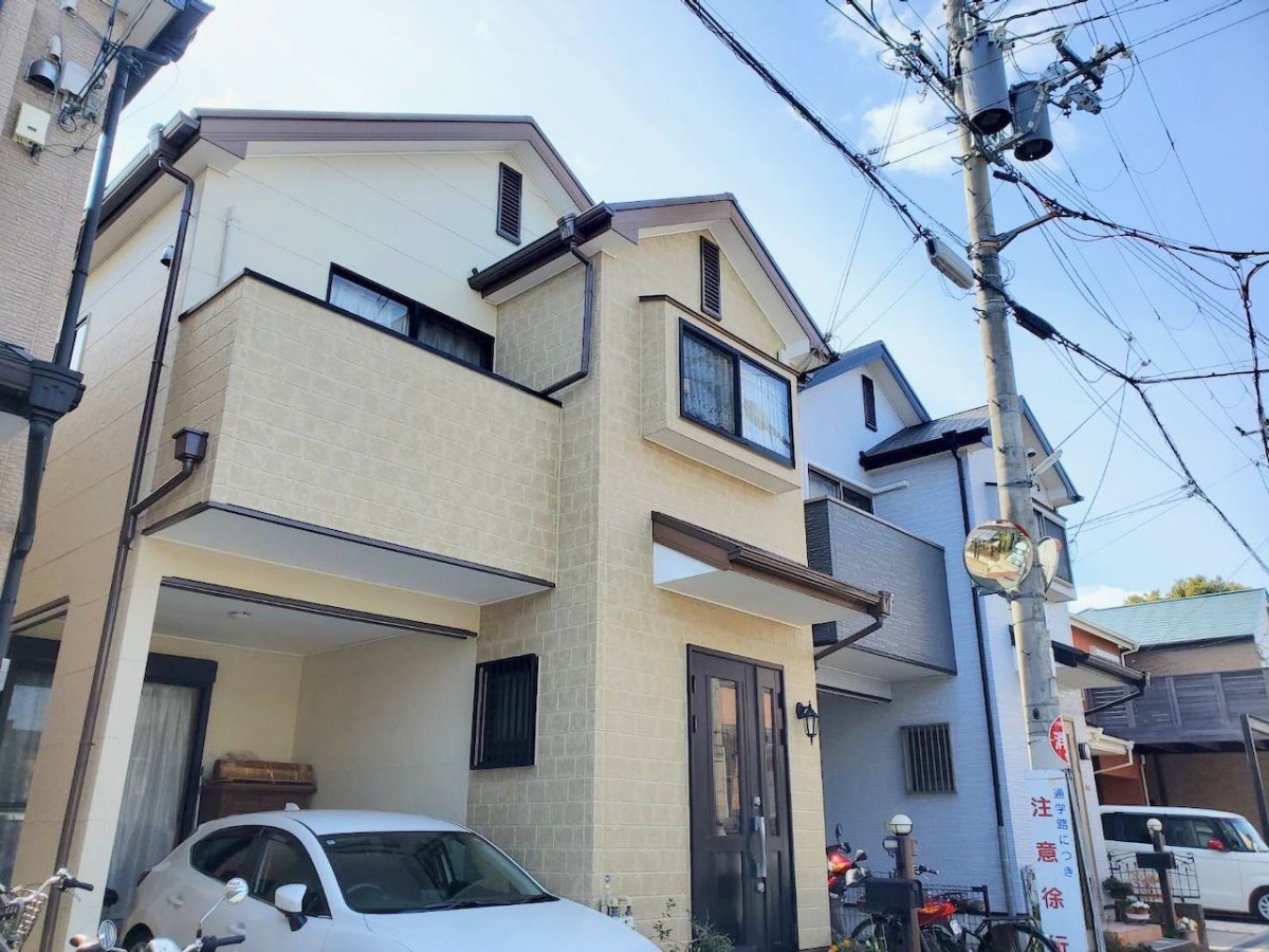 大阪府枚方市の茄子作にあります枚方交野店から直ぐご近所のお客様の家の塗り替え工事が終わりました。