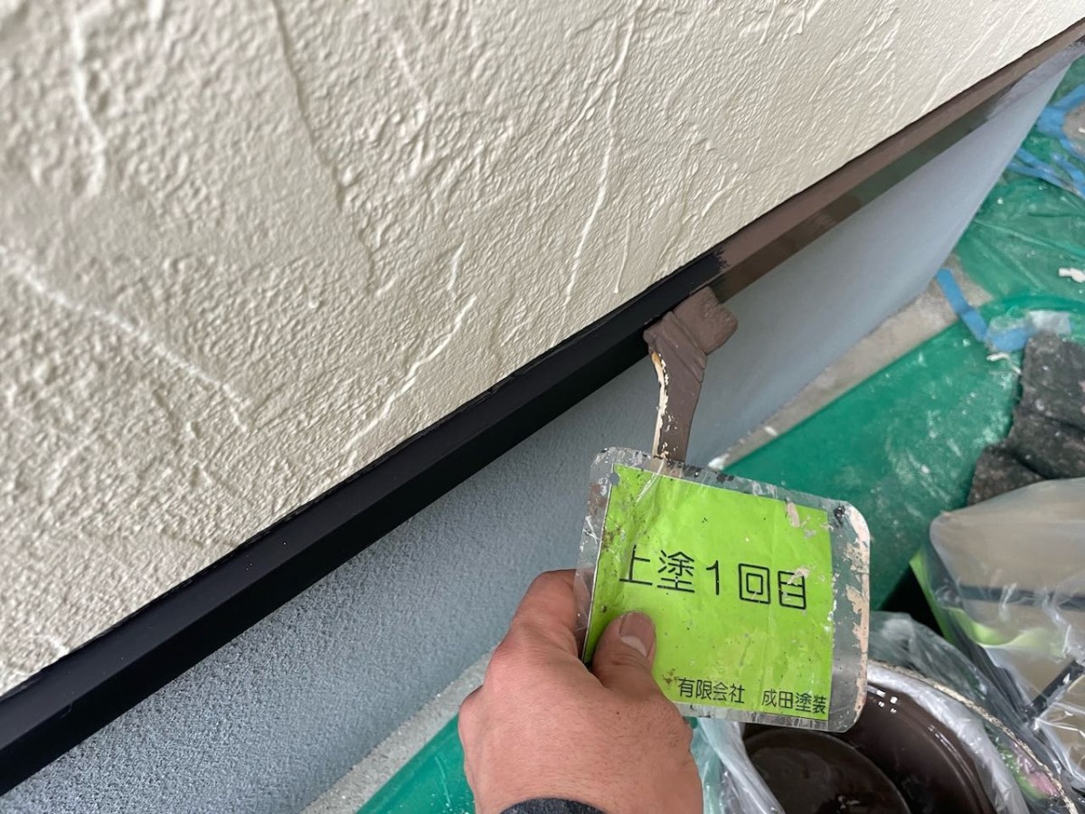 外壁はサイディングで正面には模様が有り、意匠性のある外壁でしたので今回はアステックペイントのリファインMS1000-IRを塗装しました。