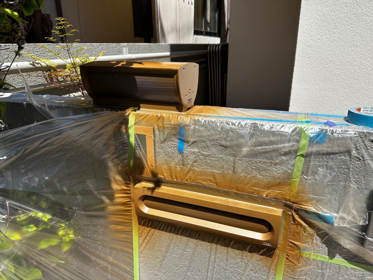長年の経験で分かった色の仕組みがわかってるからこそ出来る塗装で今回もその様に工夫して塗装したので隣のインターホンとも違和感のない色になりました。