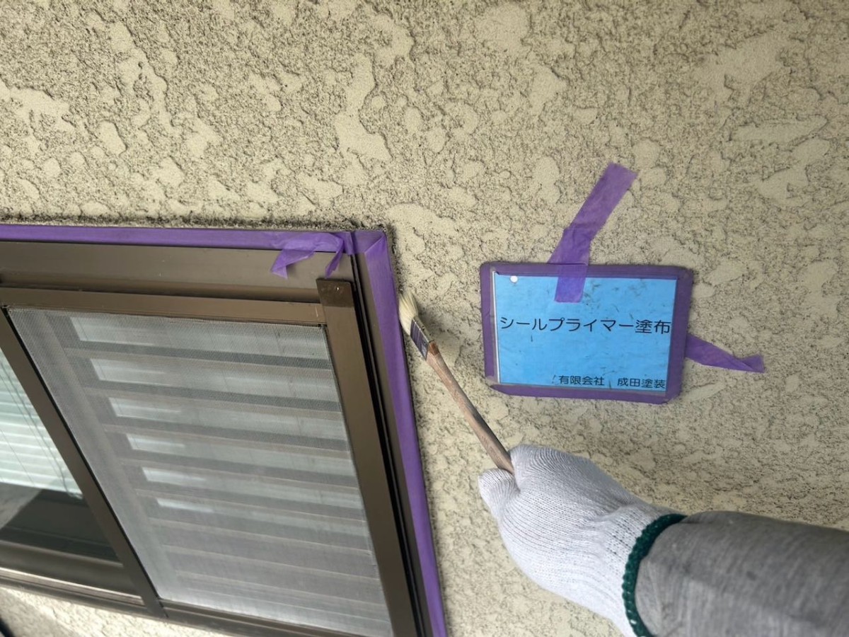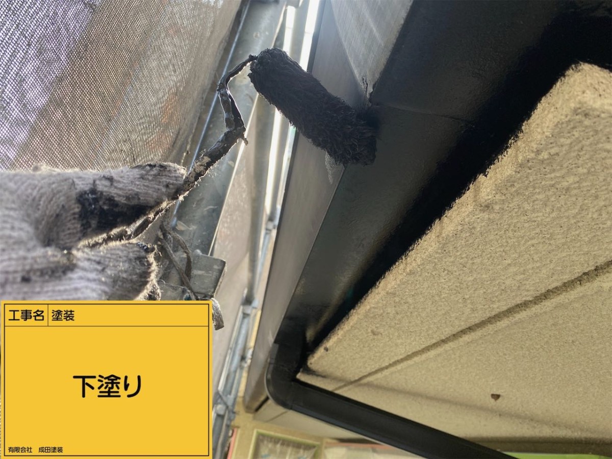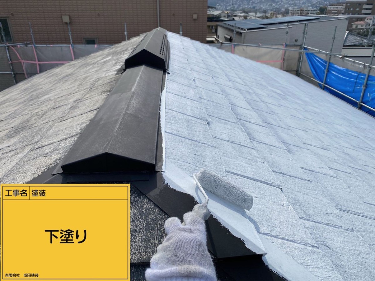屋根の下塗りは屋根専用の高反射プライマーを塗装して断熱ガイナを3回塗り。