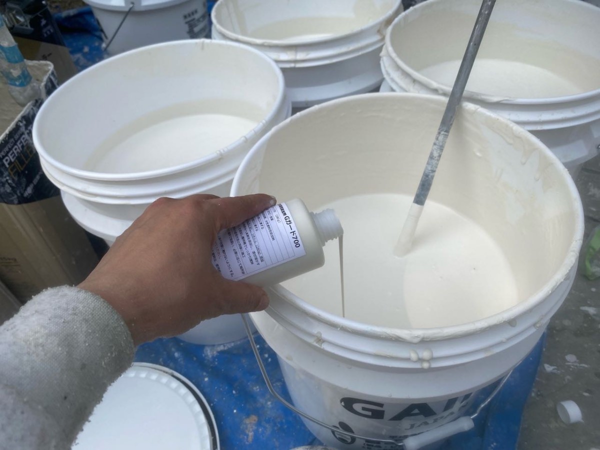 下塗りから上塗りまでしっかりと断熱のための施工を施しております。